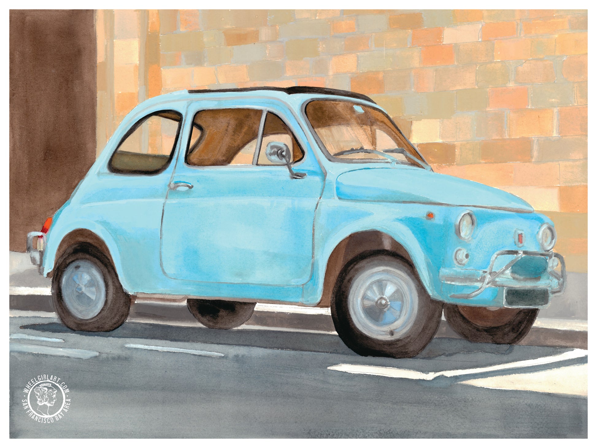 Wheelgirlart 1970 Fiat 500 Blue HD ChromaLuxe® ALUMINUM PHYSICAL PRINT