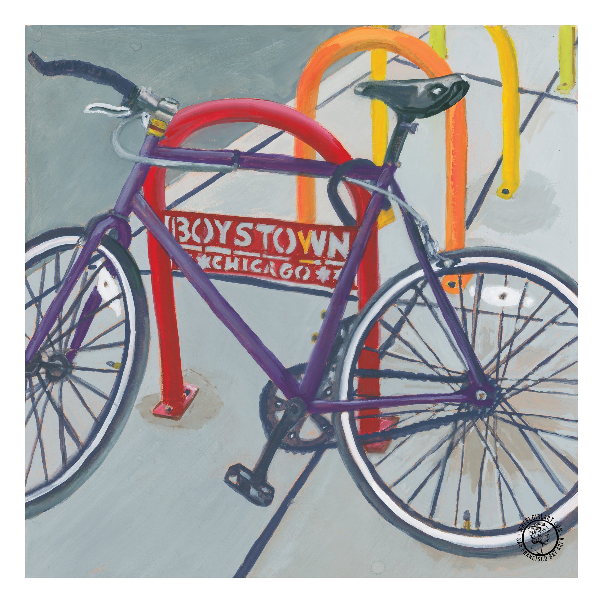 Wheelgirlart Bicycle Chicago Boystown ALUMINUM PHYSICAL PRINT